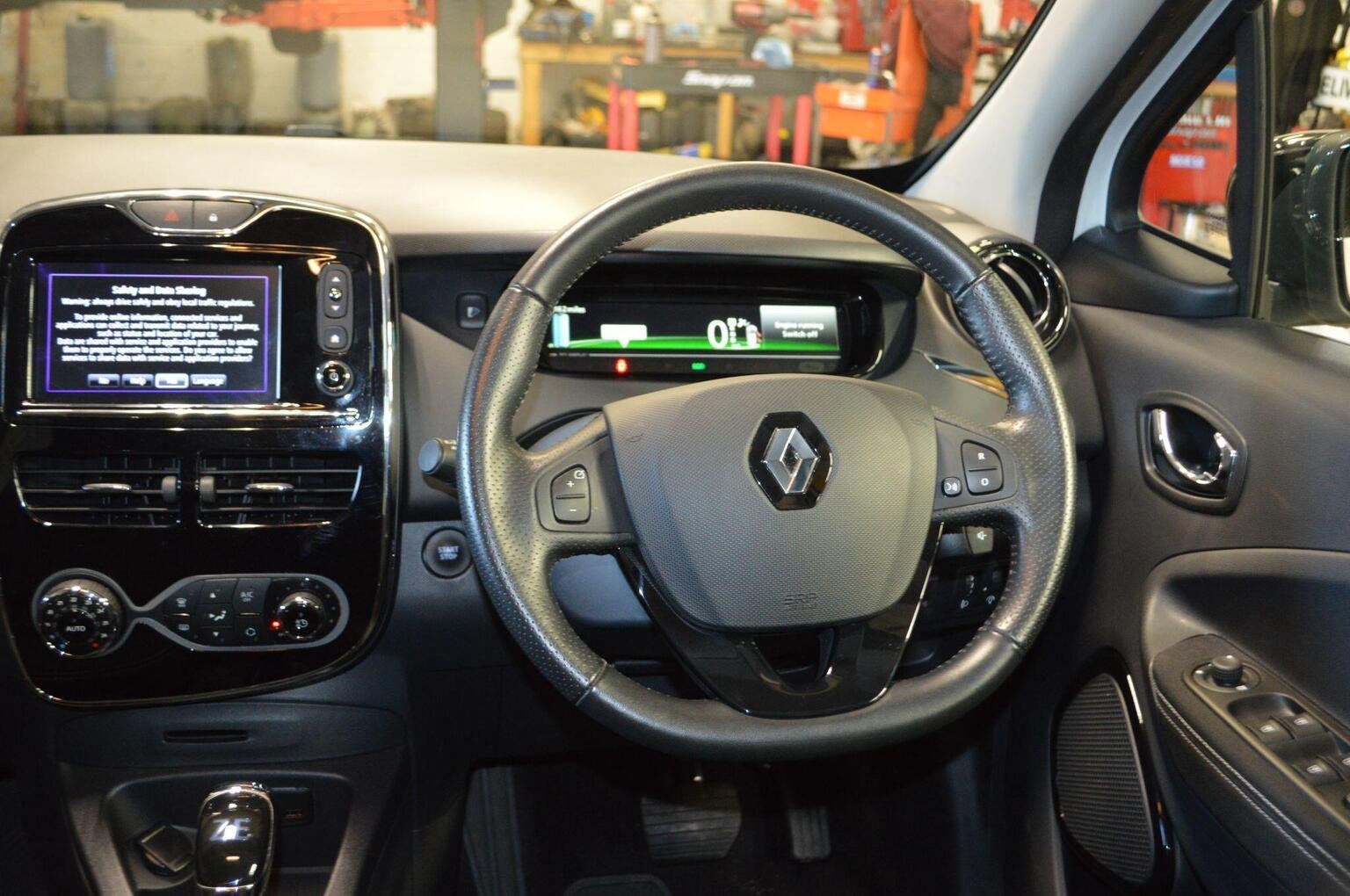 12V Power Socket, 16in Alloy Wheels - Black Shadow, 2x Front Cupholders, 4x35W Speakers with 3D Sound and FM-DAB Tuner, ABS with EBD - Electronic Brake Distribution and Emergency Brake Assist, ASR - Traction Control, Airbags - Driver, Airbags - Front Passenger, Automatic Hazard Warning Lights, Automatic Wipers with Rain Sensors and Front Lights, Battery Charge Indicator, Bumpers - Body Coloured, CSV - Understeer Control, Chameleon Charger, Charging Cable for Wall-Box and Public Charge Points with Z.E. Bag, Cleanable Luxury Protective Mats, Climate Control with Temperature and Humidity Sensors, Combined Filter, Cruise Control, Daytime Running Lights - LED, Deadlocking, Discovery Pack, Door Handles - Body Coloured - Front, Door Handles - Interior Chrome, Door Mirrors - Electrically Adjustable - Manual Folding and Heated, Door Mirrors - Gloss Black Housing, ESC - Electronic Stability Control, Eco Mode Button, Econometer, Electric Power Steering, Electric Windows - Front with Anti Pinch, Electric Windows - Rear, Electronic Engine Immobiliser, Fixed 3 Point Seat Belt on Central Rear Seat, Fixed 3 Point Seat Belts with Load Limiters on Outer Rear Seats, Foldable Rear Bench, Front Charger Socket - Charging Flap Under The Renault Logo, Front Door Bottle Storage - 1.5 ltr, Front Grill - Black, Front Side Body and Head Airbag for Driver and Passenger, Gear Knob - Leather, Glovebox - 7 litres, HSA - Hill Start Assist, Headlights - Bi-Halogen Optical Projector, Headrests - Integrated Front, Headrests - Outer Rear Height Adjustable, Heated Rear Windscreen, Height Adjustable 3-Point Front Seatbelts with Pretensioners, ISOFIX - Child Seat Fixing Points - Outer Rear Seats and Front Passenger, Invisible Rear Door Handles, Keycard - Hands Free, Parking Sensors - Rear, Portable Storage - Ash Tray, R-Link Voice Controlled TomTom Satellite Navigation with 7in Touchscreen Embedded Tablet, RAID - Renault Anti Intruder Device, Range Indicator, Range Optimizer, Seatbelt Warning Sound, Seats - Rear One Piece Folding, Side Indicators on Door Mirror, Single Rear Fog Light, Speed Limiter, Steering Wheel - Height and Depth Adjustable, Steering Wheel - Leather, Storage - Front Centre Console, Storage - Front Seat Back Pockets - Passenger, Sun Visor - Driver and Passenger - Vanity Mirror, TCU - Telematic Control Unit, TFT Display Screen, Tyre Repair Kit, USB Connection, Windows - Privacy Glass on Rear, Z.E Digital, Z.E. - Voice - Low Speed Pedestrian Warning, Z.E. Chrome Blue Headlight Surrounds, Z.E. Connect, Z.E. Interactive - 1yr Subscription, Z.E. Signature - Renault Logo